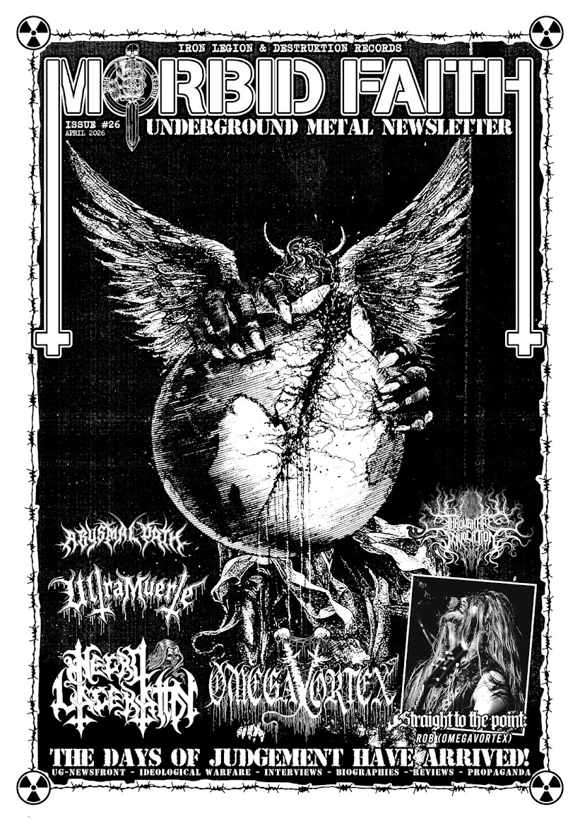 Fuk off life, but still struggling... vomits of hate: CEMETERY(Rus) - Incursion of the dark demo 1992. Dubbed tape. Death Metal project in the 90s vein, luckily preserving the sharp distortion from the previous decade, what makes them quite original. I missed this when reissued by Chupacabras Records years ago, but finally managed to get decent audios for a tape to pull memories from my brains. Starting with "Blood" you will recognize the tremolo approach inspired by classics, with a vocalist that can be linked to Raúl Guzman from TOXODEATH(Mex) on their first LP "Mysteries of life and death" era, and CHAKAL(Bra) in their "Anno Abominable Domini" era. "Terrible Dream" comes as if it were a PHANTASM(Rus) track, fukin love this sound, 100% Russian. "Doomsday" , slowest parts could even take you to Аспид(Rus) . And to kill this 4-track demo "Creation of a zombie" following what was already exposed on previous tracks. A fully consistent demo with great quality in all aspects. One could be repelled by the 90s vein but, believe me, this has a foot on the first russian metal wave, is not another overproduced project. Recommended onehundertrussian percent! MORTAL SCEPTER(Fra) - Ethereal Dominance LP 2025, by Xtreem Music Records. This label did an excellent work on releasing such an amazing band. Starting with "Ethereal Dominance" track, you automatically know this is what you were looking for; its identity is absolutely intact, what was improved (if there was something to improve), in comparisson with their previous LP "Where Light Suffocates", was the production, it suits this album 100%. The capabilities of these deathrashers are amazing, on this track you will find great up-downs, lunaticfingers-riffs and changes that blow your brains out, accompanied by the killer solo-works, with much less black metal vibes than what they used to have, technical aspects surpass that sphere of influences this time, in my opinion got better. "Redshifting to Death" it's restless, when cuts with "no; more; shelter; ..." phrase, doublekicking smashes your skull. "Blindsight" still insatiably, kills , DEATH(US) , CYNIC(US) demo era, REVENANT(US) , may be ATHEIST(US) with some LOUDBLAST(Fra) , on their track "Black Death" and AGRESSOR(Fra) with a foot on MASSACRA(Fra) are found here , with no exception, comparable with RIPPER(Chl) , SCHIZOPHRENIA(Bel) and contemporary counterparts. "Omegacide Deadrays" is the first track introducing a catchy chorus and the kind of riffs found on "Schizophrenia" LP by SEPULTURA(Bra) . "Submit to the Crave" opens B-SIDE supremely, a mixture of MERCILESS(Swe) with AURA NOIR(Nor) "Black Thrash Attack" is present, above the already mentioned influences. "Reverse Paradigm" also plays around with a catchy chorus, this time much present which I believe is not that healthy for the track, but the track is great too anyways, great solos on the top of a POSSESSED(US) -ish hammerishing-riffs, and some VEKTOR(US) is also present on the last mid-tempo, which makes sense on the whole topic surrounding this album, sci-fi goes hand-in-hand with skilled music ha! Its impressive artwork plus the IRON MAIDEN(UK) kind of font used on the backcover, were a great introduction to what one can find here. "Sense Ablation" keeps in the same direction, with much classical Thrash Metal approach, including a mixture of EXODUS(US) with MORBID ANGEL(US) thanks to palm-mutes and tremolo plus those MA chords, great track. "Into the Wolves Den" starts with some great solos and melodies but falls just right into their, previously used, Thrash Metal decorated with a Black Metal-ish style, as the flame of their own touch, drumming creativity seems boundless, an astonishing balance between guitars and drums, pretty long track but not boring at all. These guys were not only solid in releasing such a fukin awesome new LP, but also on their lineup, which I totaly believe this helps them to achieve such an outstanding result and still present identity. This was released on all formats so get your hands on it as fast as fuk! Highly Recommended! TERRIFIC VERDICT(Fin) - Demo 1988, dubbed. Impressive Thrash Metal from finland in the very vein of the best from MORPHOSIS(Fin) mixed with LYCANTHROPY(Fin) and some PROTECTED ILLUSION(Fin) . As you may expect, they were also issued on the second part of the Thrashing Relics compilation (I still haven't got it). Tracks are, "The mystery of Phantom" , "No Return" , "Physical Tendency" starting as if it were the cut in "Rokalkol" by the locals FAKIN BIRRA(Ury) ha! "Radically Suicide" with some DEVASTATION(US) texas riffs, If I am not wrong, "N.R.D." and last "Violence". Pretty good. Recommended too! Thanks mediocridad for this one! did you notice the demo artwork looks like bruno's kind of drawings!? HA! (greetings bruno!) TERRIFIC VERDICT(Fin) - Lost preacher Demo 1989, dubbed. Luckily ideas seem quite intact with little differences in terms of production, so both demos could be experienced as a full-length album. An intro opens this, then "Lost Preacher" quite slow, with many cuts but wicked vocals, "Maltreatment of Fortitude" with some HC-vibe/groove on drummings but not awful at all, great present bass, "Memories (Mental Damage)" , "Pressing the flesh", "Madness" and "Dream of the summernight". Not impressive but good demo too. TYFOON(Bel) - Criminal Death 2025 compilation by FOAD Records. Belgian Thrash Metal project, in a cleaner YOG SOTHOTH(Can) way, plus a notorious BLACK SHEPHERD(Bel) influence on first track. Really impressive, I had no clue about them and it's totally interesting. Tracks are "Criminal Death" , "Curse of Hate", that leads to "Flag of Hate" by KREATOR(GER) mixed with "S.D.I." by VIOLENT FORCE(Ger) , so you get the idea, "Gaschamber" is totally SODOM(Ger) ala "Blasphemer", closing with "S.W.H." track, in the very same vein. "The Edge of Violence" 1992 demo, starts with "The Edge of Violence" , cleaner sound, more professional and seems more skilled too, n